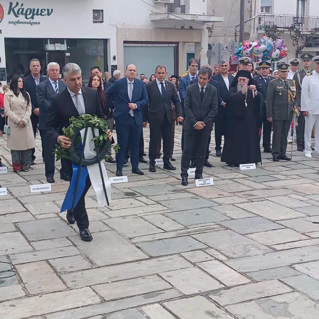 Μαζί με τον Αντιπεριφερειάρχη Καβάλας, κ. Θεόδωρο Μαρκόπουλο, και τον Αντιπεριφερειάρχη Τουρισμού, κ. Παναγιώτη Αρχοντή, ο Περιφερειάρχης συμμετείχε στις επετειακές εκδηλώσεις, αποδίδοντας φόρο τιμής στους ήρωες που συνέβαλαν στην ελευθερία της Θάσου.