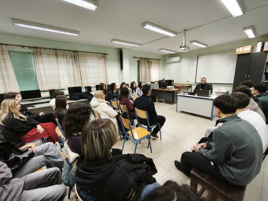 Κατά τη διάρκεια της επίσκεψης, οι μαθητές παρουσίασαν εργασία με θέμα την Τεχνητή Νοημοσύνη. Ακολούθησε συζήτηση, με τον κ. Στυλιανίδη να τοποθετείται επί του θέματος και να απαντά σε ερωτήσεις των μαθητών.
