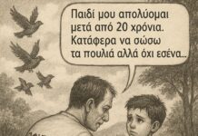 Η οδύνη για το τί συνέβη στο νησί του, ζωγραφισμένη στο πρόσωπό του και η απόγνωση για το αύριο.