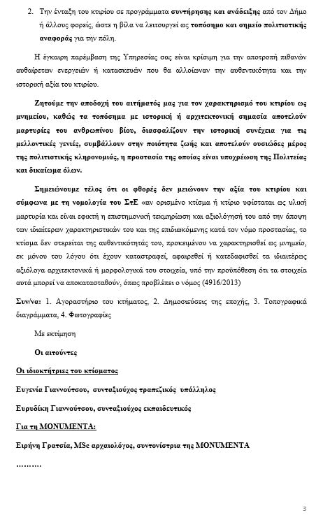 Οι υπογράφοντες τονίζουν ότι η προστασία του κτιρίου αποτελεί υποχρέωση της Πολιτείας και δικαίωμα των πολιτών, επισημαίνοντας πως η διάσωση μνημείων ιστορικής και αρχιτεκτονικής αξίας αποτελεί κρίσιμη παράμετρο για τη διατήρηση της συλλογικής μνήμης και τη βελτίωση της ποιότητας ζωής.