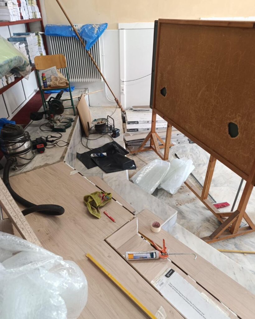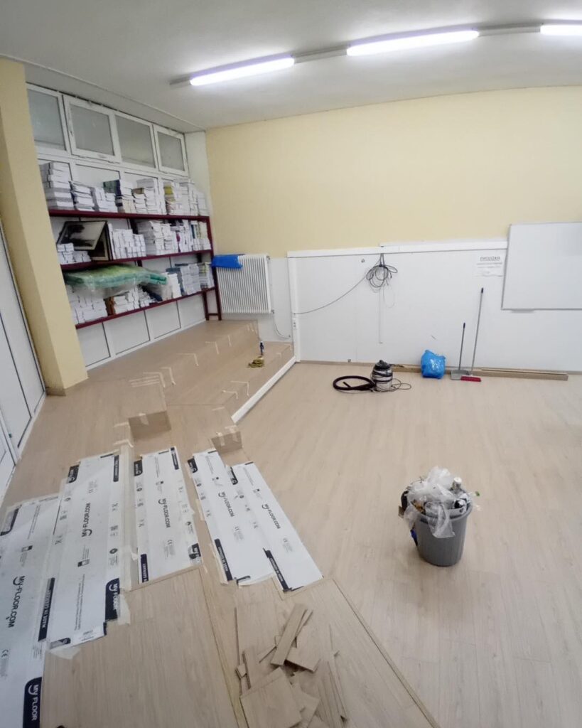 Στο πλαίσιο των εργασιών πραγματοποιείται η τοποθέτηση νέου δαπέδου laminate, καθώς και άλλες απαραίτητες παρεμβάσεις που βελτιώνουν την καθημερινή χρήση και την συνολική εικόνα του χώρου.