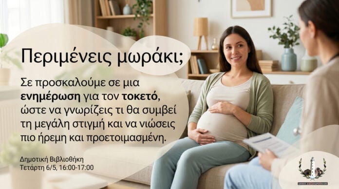 Ενημερωτική συνάντηση για τον τοκετό διοργανώνει ο Δήμος Αλεξανδρούπολης την Τετάρτη 6 Μαΐου, στη Δημοτική Βιβλιοθήκη της πόλης.