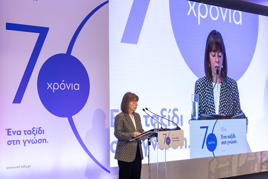 Η κα Κατερίνα Σακελλαροπούλου, τέως Πρόεδρος της Ελληνικής Δημοκρατίας, στον εναρκτήριο χαιρετισμό της δήλωσε: «Η επέτειος των 70 χρόνων του Ιδρύματος Ευγενίδου δεν αποτελεί μόνο έναν ιστορικό σταθμό, αλλά και μια ευκαιρία να αναδειχθεί η διαχρονική αποστολή του Ιδρύματος, η οποία συνίσταται στην ενίσχυση της τεχνικής και επιστημονικής εκπαίδευσης των νέων ως θεμελιώδους πυλώνα της