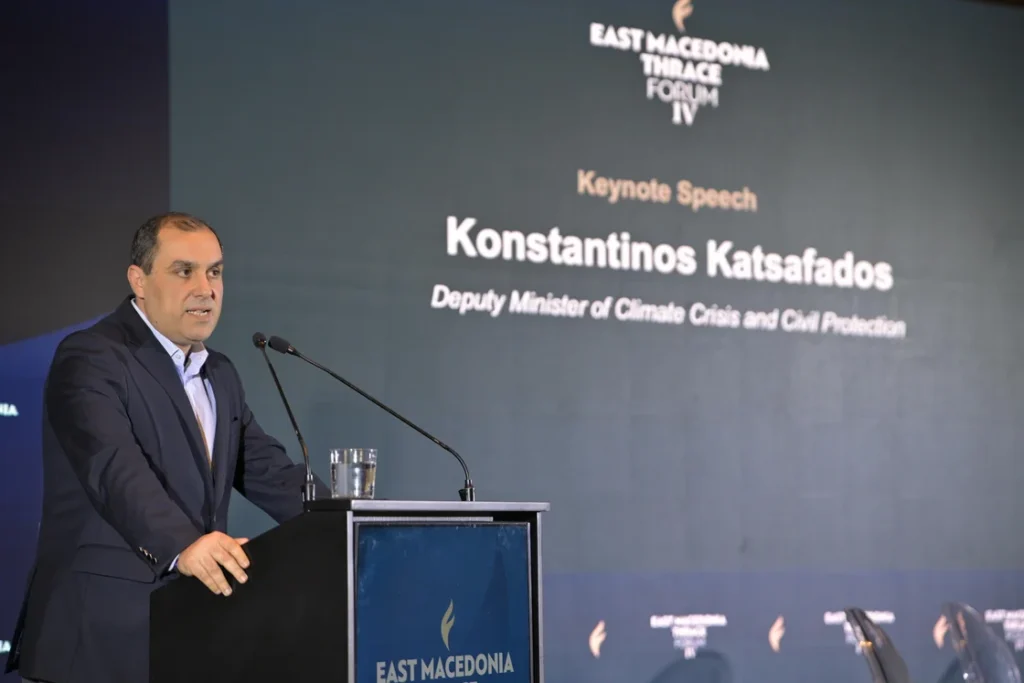 Ο Υφυπουργός Κλιματικής Κρίσης και Πολιτικής Προστασίας, Κωνσταντίνος Κατσαφάδος, κατά την τοποθέτησή του, σημείωσε ότι βρισκόμαστε σε πολύ ταραγμένες εποχές που κρύβουν πολλούς κινδύνους οι οποίοι επηρεάζουν την καθημερινότητα και την οικονομία μας.