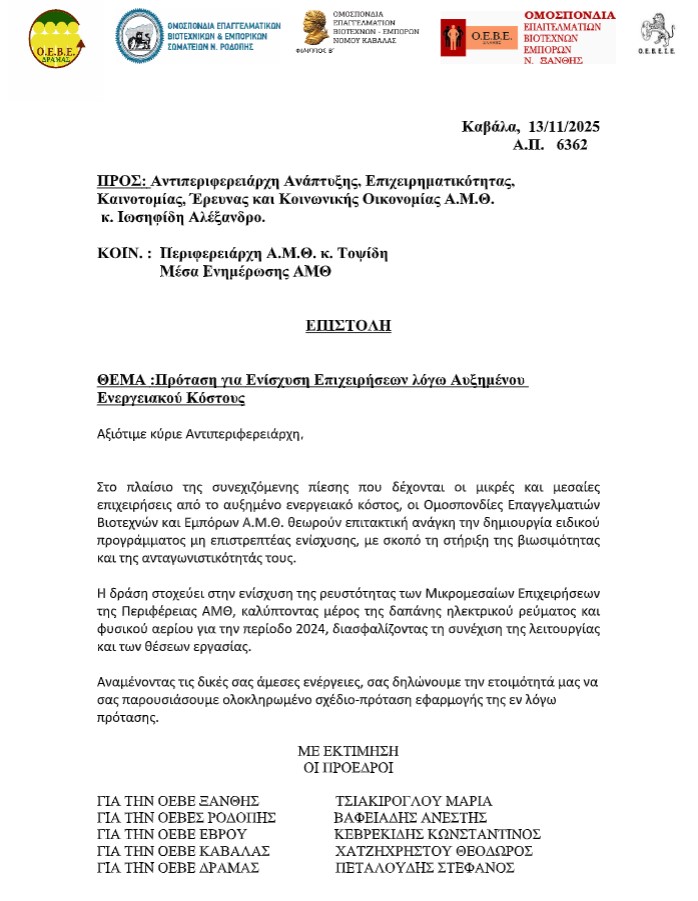 Ακολουθεί η επιστολή των ΟΕΒΕ ΑΜΘ: