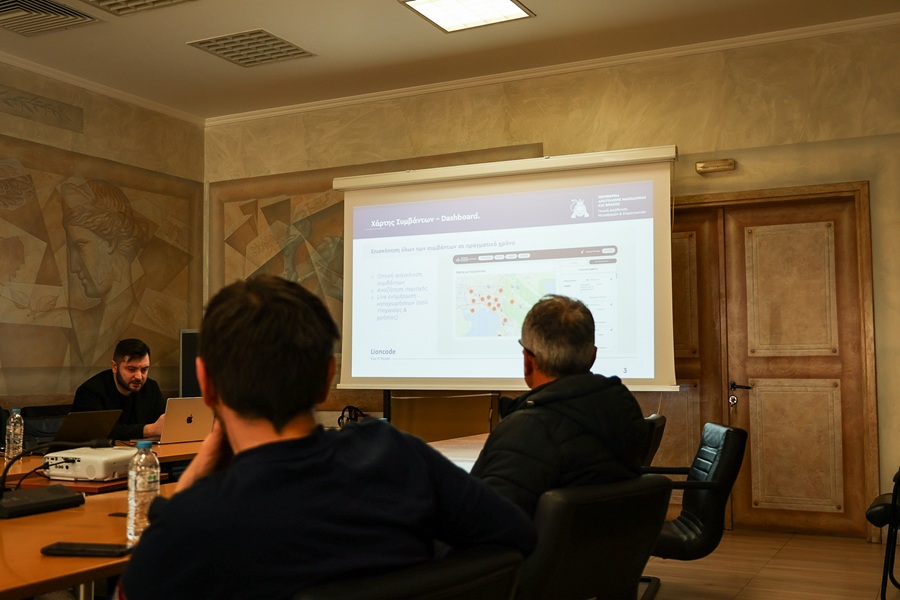 Κατά τη συνάντηση παρουσιάστηκε η λειτουργία της εφαρμογής από τον προϊστάμενο της Γενικής Διεύθυνσης Μεταφορών και Επικοινωνιών, κ. Παντελή Δελίδη. Η εφαρμογή παρέχει δυνατότητα καταγραφής και παρακολούθησης τροχαίων ατυχημάτων και συμβάντων, ανάλυσης στατιστικών δεδομένων και υποστήριξης της λήψης αποφάσεων.