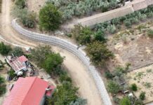 Η νύφη έφτασε στο γάμο με βάρκα φορώντας ένα μακρύ λευκό νυφικό που είχε σχεδιάσει η ίδια ενώ ο γαμπρός την περίμενε μαζί με τη μικρή τους κόρη.