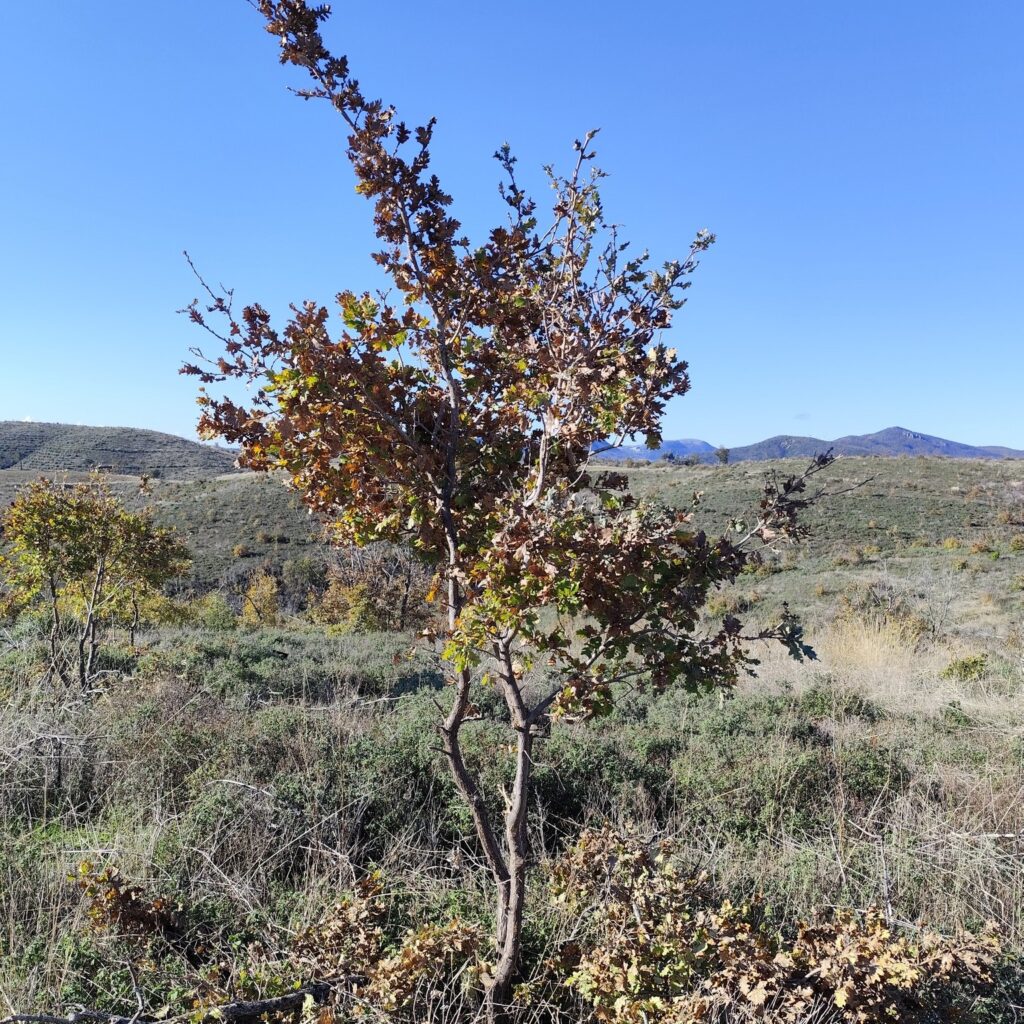 Παράλληλα, παρατηρείται φυσική αναγέννηση της θαμνώδους και πλατύφυλλης βλάστησης, η οποία σε ορισμένα σημεία έχει φτάσει μέχρι το 1 μέτρο ύψος. Για την ενίσχυση της ανάπτυξης των δέντρων, εφαρμόστηκε η μέθοδος της αραίωσης ή «μονοβέργισμα», που περιλαμβάνει την απομάκρυνση καχεκτικών κλαδιών και τη διατήρηση υγιών βλαστών. Η διαδικασία πραγματοποιήθηκε με εργαλεία χειρός και αλυσοπρίονα, με στόχο τη δημιουργία ψηλού και σταθερού δάσους και τη βελτίωση της ανθεκτικότητας της περιοχής.