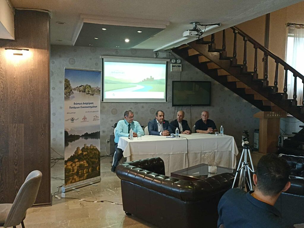 Η καρδιά του τριημέρου χτύπησε το Σάββατο 27 Σεπτεμβρίου στην ημερίδα με θέμα «Υδάτινα Οικοσυστήματα – Βιώσιμη Διαχείριση υπό Συνθήκες Κλιματικής Κρίσης», που φιλοξενήθηκε στην αίθουσα εκδηλώσεων του ξενοδοχείου Πλωτίνη.