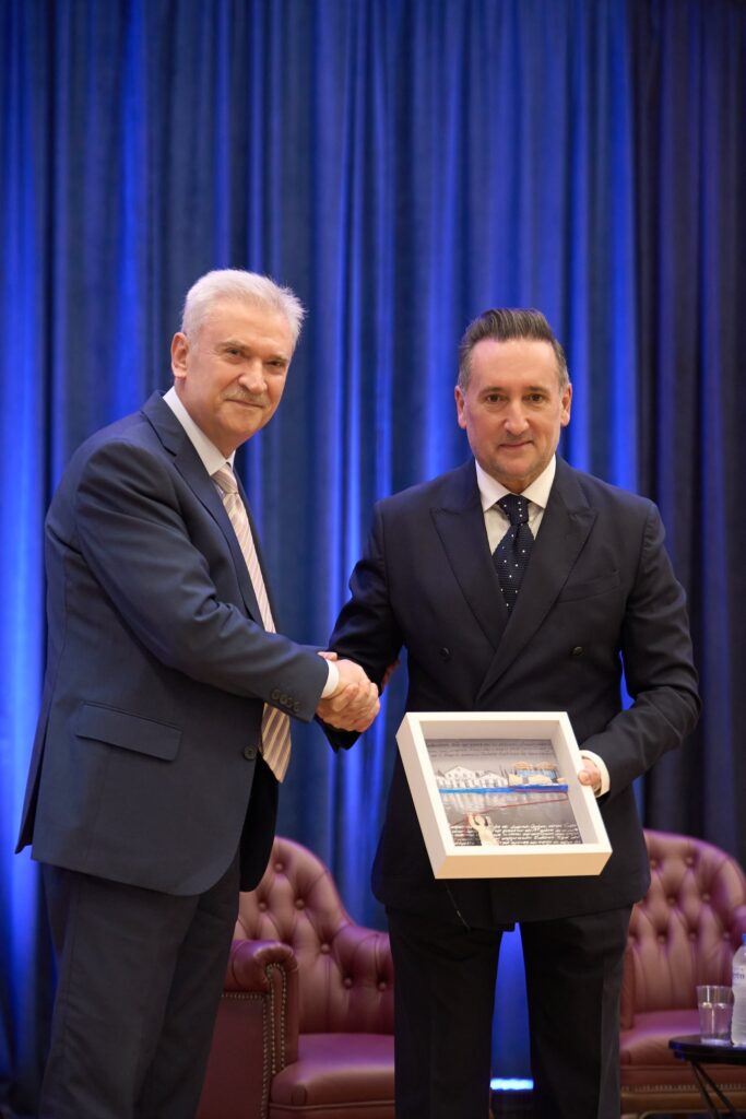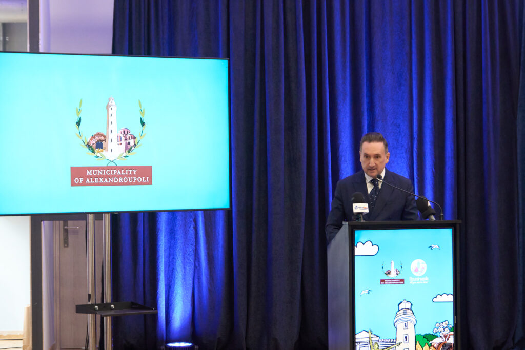 Ο Δήμαρχος Αλεξανδρούπολης Γιάννης Ζαμπούκης κατά τον χαιρετισμό του επισήμανε: «𝛨 𝜋ό𝜆𝜂 𝜇𝛼ς, 𝜂 𝜄𝜎𝜏𝜊𝜌ί𝛼 𝜏𝜂ς, 𝜊𝜄 ά𝜈𝜃𝜌𝜔𝜋𝜊ί 𝜏𝜂ς 𝜅𝛼𝜄 𝜏𝛼 𝜅𝜏ή𝜌𝜄ά 𝜏𝜂ς 𝛼𝜋𝜊𝜏𝜀𝜆𝜊ύ𝜈 έ𝜈𝛼 𝜀𝜈𝜄𝛼ί𝜊 𝜎ύ𝜈𝜊𝜆𝜊. 𝛫𝛼𝜄 𝜀ί𝜈𝛼𝜄 𝛽𝛼𝜃𝜄ά 𝜇𝜊𝜐 𝜋𝜀𝜋𝜊ί𝜃𝜂𝜎𝜂 ό𝜏𝜄 𝜏𝛼 𝜅𝜏ή𝜌𝜄ά 𝜇𝛼ς 𝜋𝜌έ𝜋𝜀𝜄 𝜈𝛼 𝛼𝜋𝜊𝜅𝜏𝜊ύ𝜈 𝜊𝜈𝜊𝜇𝛼𝜏𝜀𝜋ώ𝜈𝜐𝜇𝜊. Ό𝜒𝜄 𝛾𝜄𝛼 𝜆ό𝛾𝜊𝜐ς 𝜏𝜐𝜋𝜄𝜅𝜊ύς ή 𝛿𝜄𝛼𝜒𝜀𝜄𝜌𝜄𝜎𝜏𝜄𝜅𝜊ύς. 𝛢𝜆𝜆ά 𝛾𝜄𝛼 𝜆ό𝛾𝜊𝜐ς 𝛽𝛼𝜃𝜄ά 𝜋𝜊𝜆𝜄𝜏𝜄𝜎𝜇𝜄𝜅𝜊ύς, 𝛼𝜈𝜃𝜌ώ𝜋𝜄𝜈𝜊𝜐ς 𝜅𝛼𝜄 𝜄𝜎𝜏𝜊𝜌𝜄𝜅𝜊ύς. Ό𝜒𝜄 𝜇ό𝜈𝜊 𝛾𝜄𝛼 𝜈𝛼 𝜇𝜋𝜊𝜌𝜊ύ𝜈 𝜈𝛼 𝜏𝛼 𝜀𝜈𝜏𝜊𝜋ί𝜁𝜊𝜐𝜈 𝜊𝜄 𝜀𝜋ό𝜇𝜀𝜈𝜀ς 𝛾𝜀𝜈𝜄ές, 𝛼𝜆𝜆ά 𝛾𝜄𝛼 𝜈𝛼 𝜇έ𝜈𝜊𝜐𝜈 ά𝜎𝛽𝜀𝜎𝜏𝛼 𝜎𝜏𝜂 𝜎𝜐𝜆𝜆𝜊𝛾𝜄𝜅ή 𝜇𝜈ή𝜇𝜂, 𝛾𝜄𝛼 𝜈𝛼 𝜇𝛼ς 𝜃𝜐𝜇ί𝜁𝜊𝜐𝜈 𝜋𝜊𝜄𝜊𝜄 𝜀ί𝜇𝛼𝜎𝜏𝜀 𝜅𝛼𝜄 𝛼𝜋ό 𝜋𝜊ύ 𝜀𝜌𝜒ό𝜇𝛼𝜎𝜏𝜀.