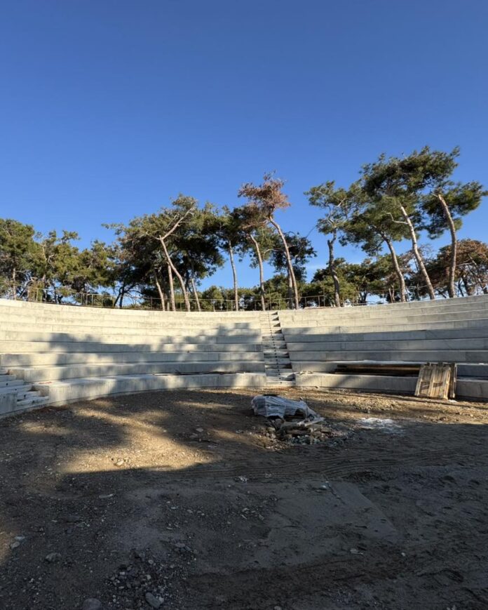 Αυτή την περίοδο ολοκληρώνονται οι τοποθετήσεις πλακιδίων στα δάπεδα, οι ελαιοχρωματισμοί στους εσωτερικούς χώρους και οι υδραυλικές εγκαταστάσεις, ενώ παράλληλα πραγματοποιούνται τα τριψίματα στα εξωτερικά εμφανή μπετά — μια απαιτητική διαδικασία που θα αναδείξει την τελική, καθαρή όψη του θεάτρου.