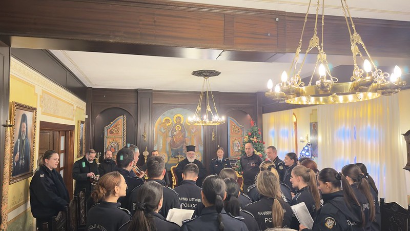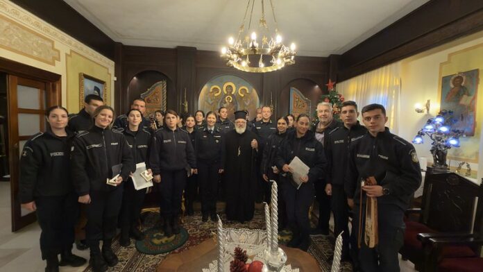 Την Παρασκευή, 19 Δεκεμβρίου 2025, ο Σεβασμιώτατος Μητροπολίτης Διδυμοτείχου, Ορεστιάδος και Σουφλίου, κ. Δαμασκηνός, υποδέχθηκε στο Επισκοπείο Διδυμοτείχου την πολυμελή Χορωδία της Σχολής Δοκίμων Αστυφυλάκων Διδυμοτείχου, η οποία επισκέφθηκε τον Μητροπολίτη εν όψει των εορτών του Αγίου Δωδεκαημέρου. Τη χορωδία συνόδευε η Διοικήτρια της Σχολής, αστυνομική υποδιευθύντρια Αναστασία Πουρναρά.
