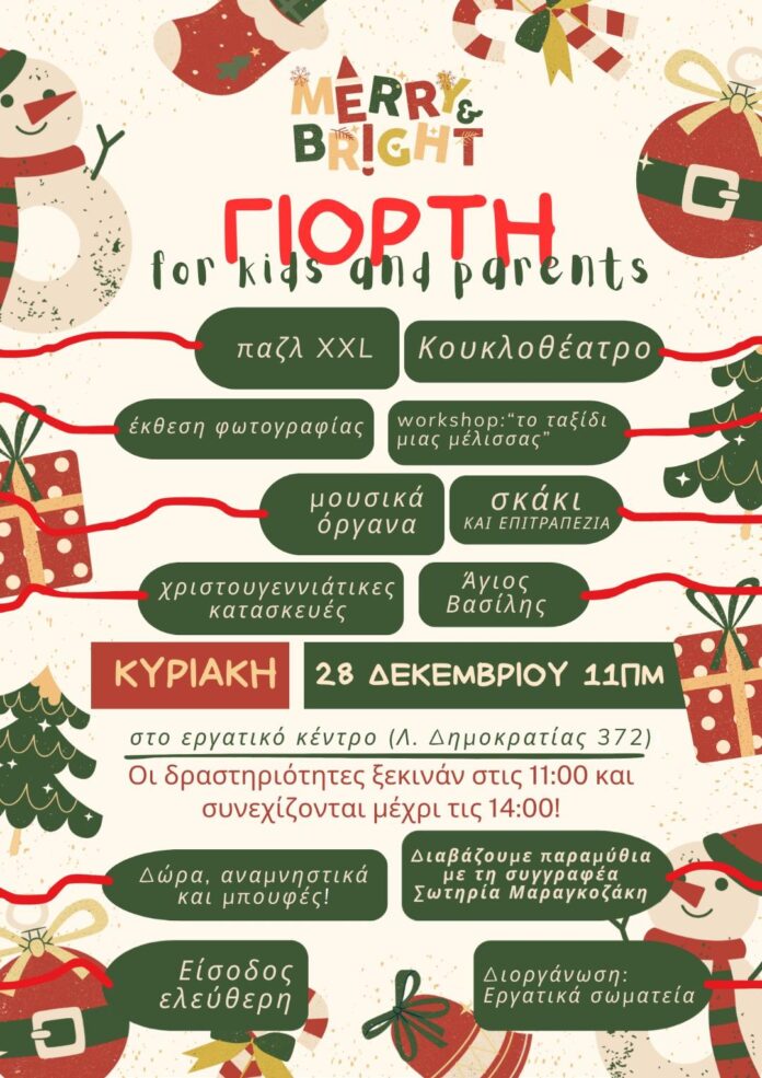 Τα Σωματεία Εμποροϋπαλλήλων και τα εργατικά σωματεία της περιοχής διοργανώνουν Χριστουγεννιάτικη γιορτή για μικρούς και μεγάλους, την Κυριακή 28 Δεκεμβρίου 2025.