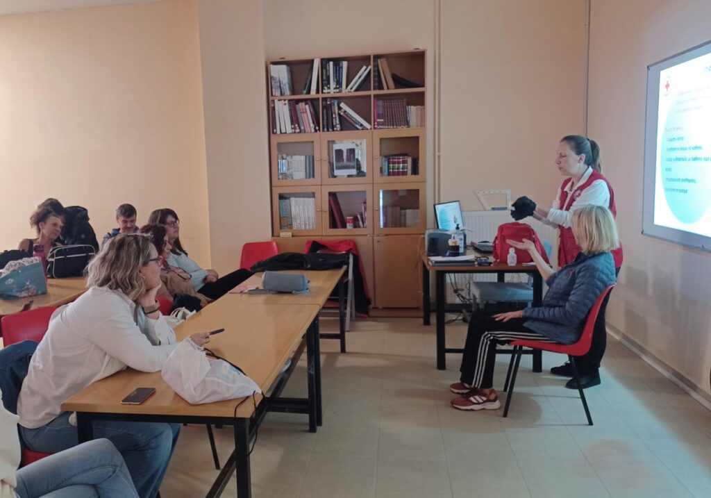 Οι συμμετέχοντες παρακολούθησαν βιωματικά κατευθυντήριες οδηγίες για την παροχή πρώτων βοηθειών σε περιπτώσεις τραυμάτων, αιμορραγιών, μυοσκελετικών κακώσεων, απώλειας αισθήσεων και πνιγμονής.
