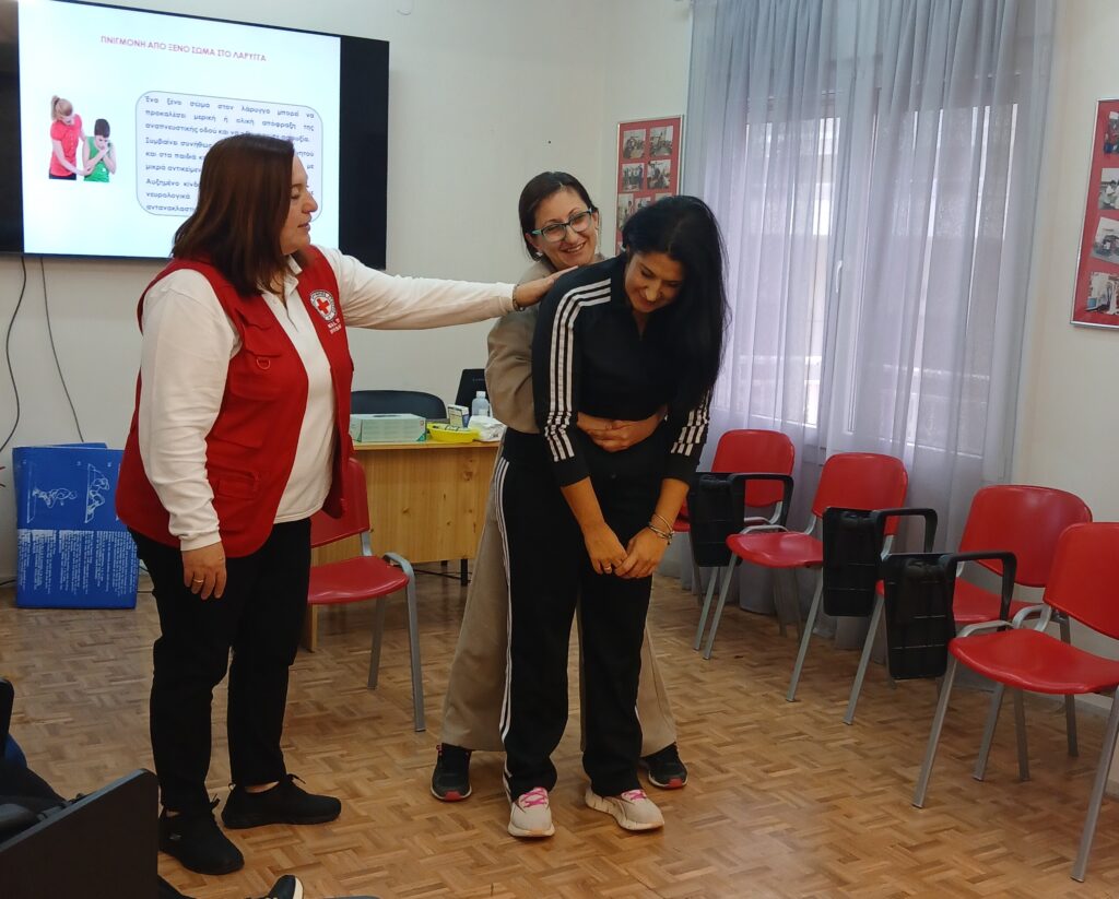 Τα μαθήματα πραγματοποιήθηκαν στην αίθουσα διδασκαλίας του τμήματος και περιλάμβαναν πρακτική εκπαίδευση στην πνιγμονή, πλάγια θέση, καρδιοαναπνευστική αναζωογόνηση και χρήση αυτόματου εξωτερικού απινιδιστή (AED).