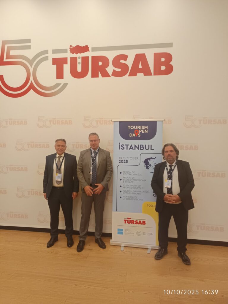 Στις 10 Οκτωβρίου, ο Αντιπεριφερειάρχης Τουρισμού κ. Παναγιώτης Αρχοντής, μαζί με την Ομάδα Τουρισμού της Περιφέρειας, συμμετείχαν στη ειδική τουριστική δράση B2B στην Κωνσταντινούπολη της Τουρκίας, στο πλαίσιο των ειδικών δράσεων «Tourism Open Days». Η δράση έλαβε χώρα στα κεντρικά γραφεία της TURSAB παρουσία του προέδρου της εταιρίας και του Έλληνα Γενικού Προξένου στην Κωνσταντινούπολη.