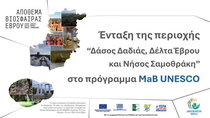 (Άνθρωπος και Βιόσφαιρα) της UNESCO, για την περιοχή Δάσος Δαδιάς – Δέλτα Έβρου – Νήσος Σαμοθράκη, διοργανώνει συναντήσεις ενημέρωσης διαβούλευσης με την υποστήριξη των Δήμων Σουφλίου, Αλεξανδρούπολης και Σαμοθράκης: