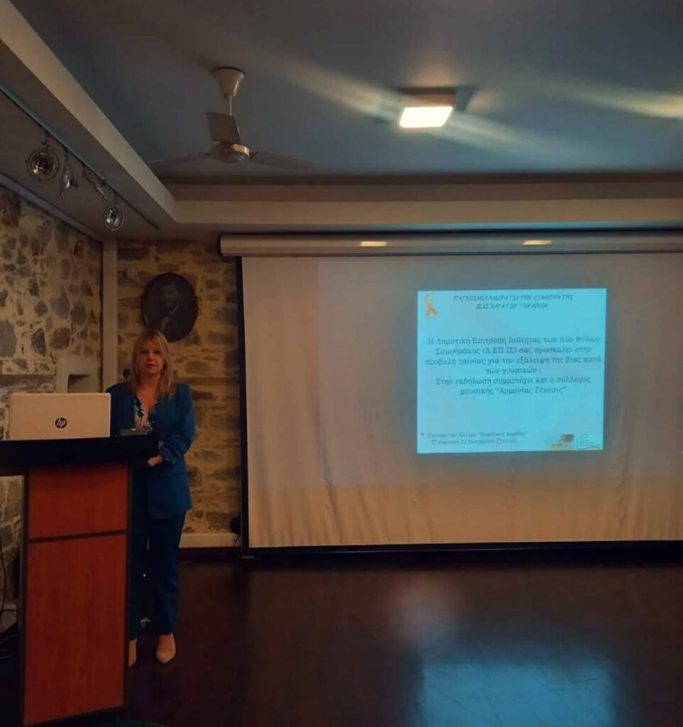 Ο Δήμος Σαμοθράκης διοργάνωσε στις 23 Νοεμβρίου εκδήλωση με αφορμή την Παγκόσμια Ημέρα για την Εξάλειψη της Βίας κατά των Γυναικών, με στόχο την ενημέρωση, την ευαισθητοποίηση και την ενδυνάμωση της τοπικής κοινωνίας γύρω από το φαινόμενο της έμφυλης βίας.
