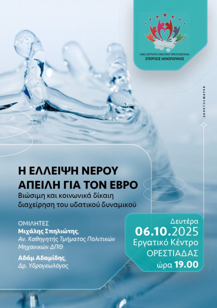 «Η έλλειψη νερού απειλή για τον Έβρο – Βιώσιμη και κοινωνικά δίκαιη διαχείριση του υδατικού δυναμικού»