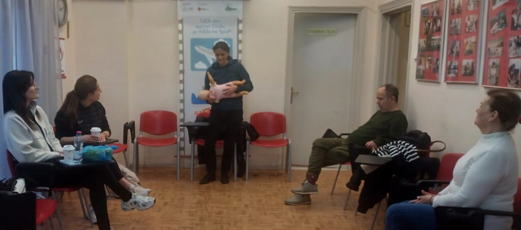 Την ίδια ημέρα, πραγματοποιήθηκε Πιστοποιημένο Πρόγραμμα Βασικής Υποστήριξης Ζωής (BLS) με χρήση Αυτόματου Εξωτερικού Απινιδιστή στην αίθουσα διδασκαλίας του τμήματος. Οι συμμετέχοντες εκπαιδεύτηκαν στη θεωρία και ακολούθησε πρακτική εξάσκηση σε προπλάσματα, καλύπτοντας καταστάσεις όπως απώλεια αισθήσεων, πνιγμονή, καρδιοαναπνευστική αναζωογόνηση και χρήση απινιδιστή, εφαρμόζοντας τις δεξιότητες σε εργασιακό και οικογενειακό περιβάλλον.
