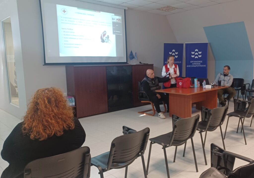 Στις 13 Νοεμβρίου 2025, Νοσηλεύτριες–Εκπαιδεύτριες βρέθηκαν στον Οργανισμό Λιμένος Αλεξανδρούπολης Α.Ε., κατόπιν αιτήματος της εταιρείας, για ενημέρωση εργαζομένων και προσωπικού ασφαλείας σε θέματα Πρώτων Βοηθειών. Παρουσιάστηκαν τεχνικές αντιμετώπισης τραυμάτων, αιμορραγιών, απώλειας αισθήσεων και πραγματοποιήθηκε επίδειξη Καρδιοαναπνευστικής Αναζωογόνησης με χρήση εκπαιδευτικών προπλασμάτων.