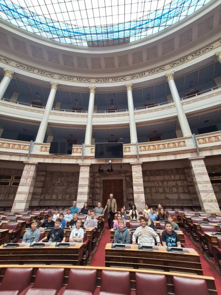 Οι μαθητές και οι μαθήτριες του σχολείου, συνοδευόμενοι από εκπαιδευτικούς και γονείς, είχαν την ευκαιρία να ξεναγηθούν στο κτίριο του Κοινοβουλίου, το οποίο αποτελεί ένα από τα σημαντικότερα ιστορικά και αρχιτεκτονικά κτίρια της χώρας.