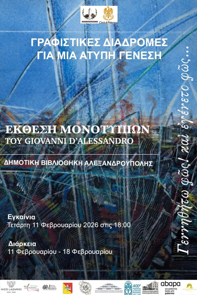 Ο Δήμος Αλεξανδρούπολης υποδέχεται στην Δημοτική Βιβλιοθήκη την έκθεση μονοτυπιών του Giovanni D’ Alessandro με τίτλο: