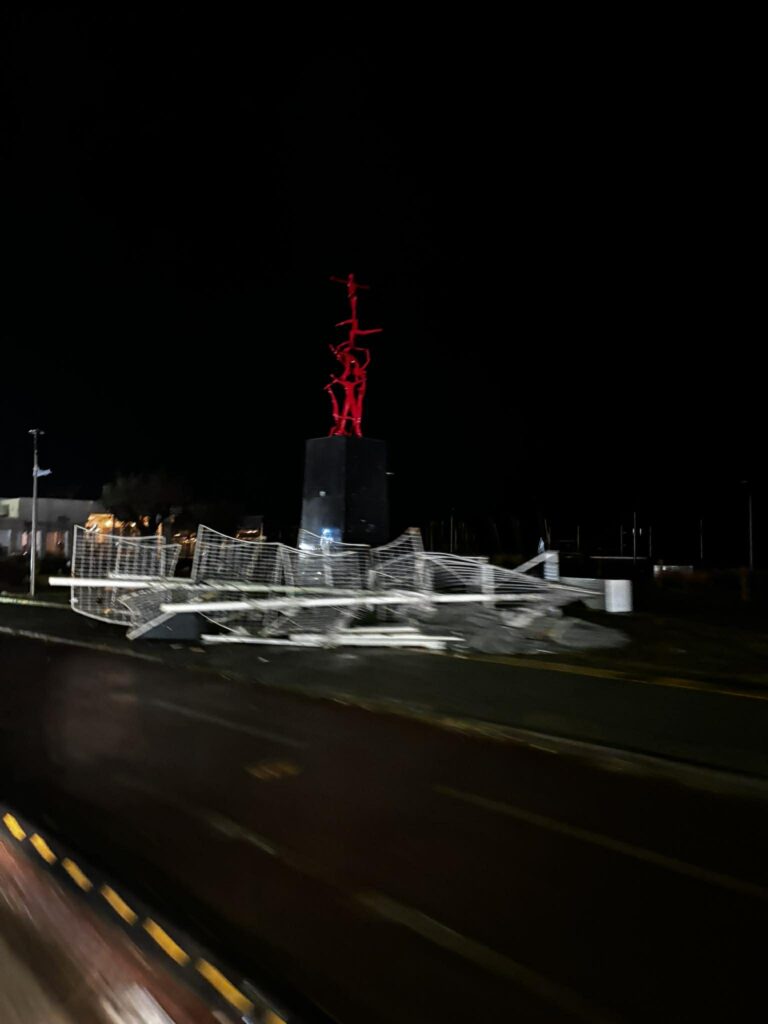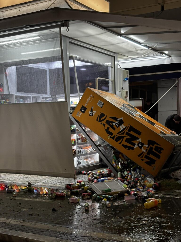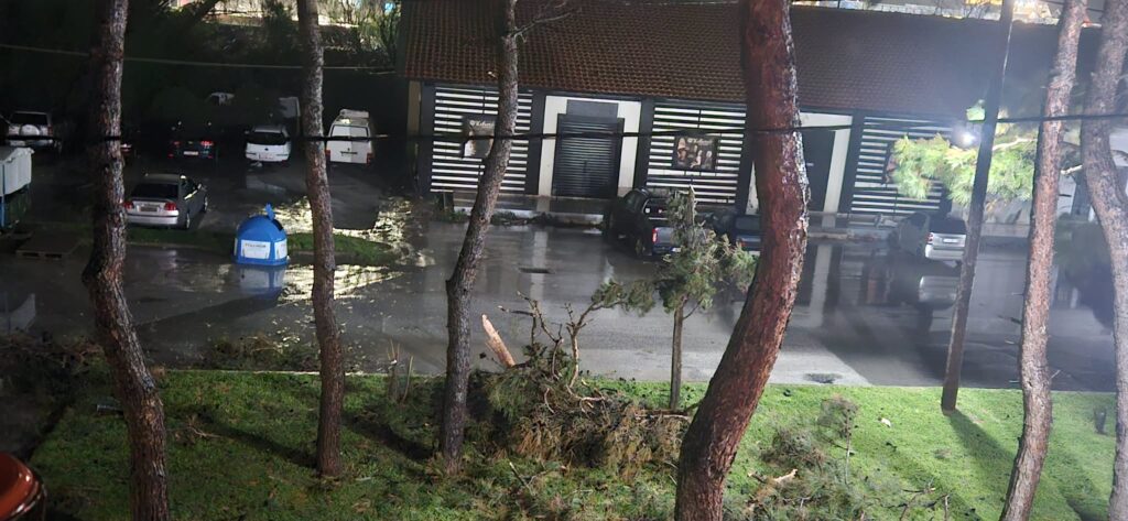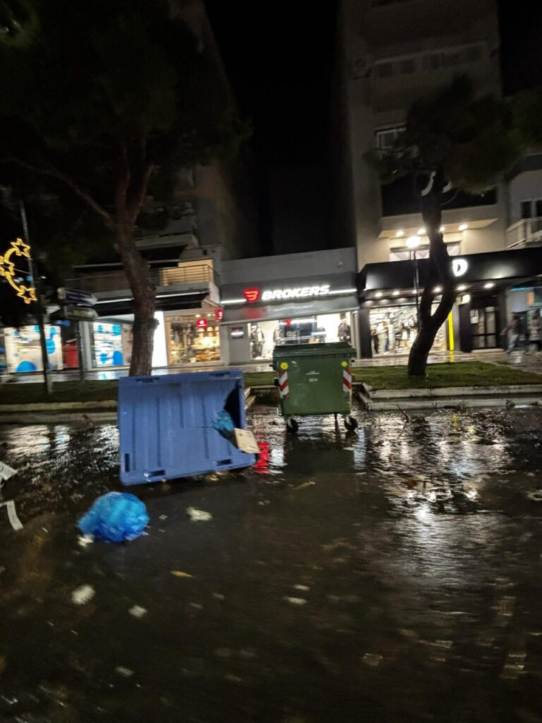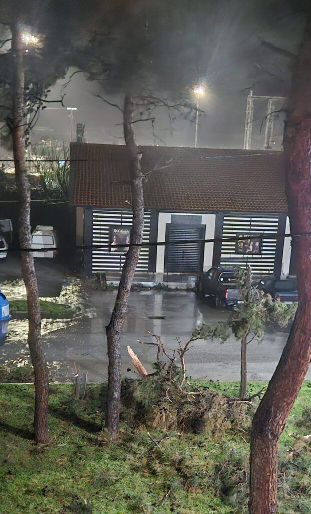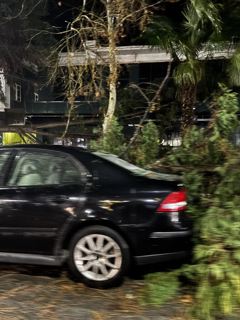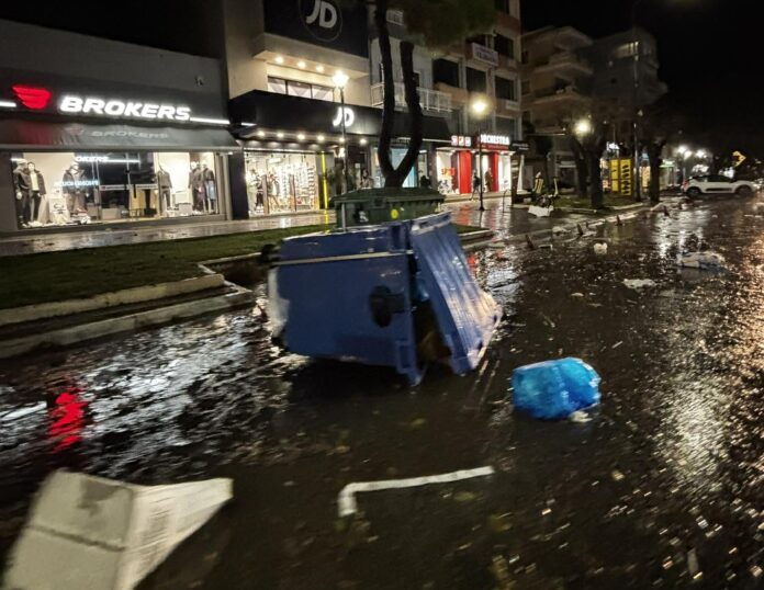 Η κατάσταση σε κεντρικούς δρόμους είναι χαοτική, με κάδους απορριμμάτων να αναποδογυρίζονται από ριπές ανέμου και φερτά υλικά να εμποδίζουν την κυκλοφορία. Πολλά δέντρα έπεσαν σε πεζοδρόμια και οδοστρώματα, με τουλάχιστον δύο οχήματα να έχουν υποστεί σοβαρές γρατζουνιές και λαμαρίνες από πτώσεις κλαδιών — σύμφωνα με φωτογραφίες και βίντεο που αναρτώνται στα social media από κατοίκους της περιοχής.