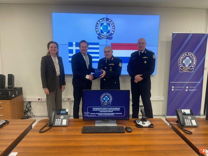 Στο αεροδρόμιο “Δημόκριτος” της Αλεξανδρούπολης επισκέφθηκε το Περιφερειακό Κέντρο Ολοκληρωμένης Διαχείρισης Συνόρων και Μετανάστευσης (ΠΕΚΟΔΙΣΜΕ), όπου τον υποδέχθηκαν ο Γενικός Περιφερειακός Αστυνομικός Διευθυντής Ανατολικής Μακεδονίας και Θράκης, Λάμπρος Τσιάρας, και ο Αστυνομικός Διευθυντής Αλεξανδρούπολης, Χρήστος Αξής, οι οποίοι τον ενημέρωσαν για το Κέντρο και του πρόσφεραν αναμνηστικά δώρα.