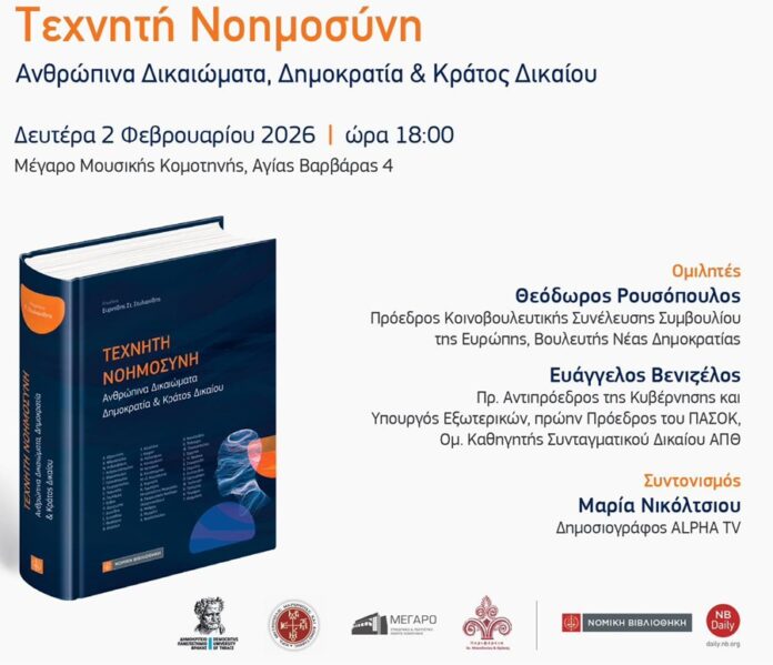 Επιστημονική εκδήλωση με αντικείμενο τις προκλήσεις της Τεχνητής Νοημοσύνης σε σχέση με τα Ανθρώπινα Δικαιώματα, τη Δημοκρατία και το Κράτος Δικαίου θα πραγματοποιηθεί τη Δευτέρα 2 Φεβρουαρίου 2026 στην Κομοτηνή.