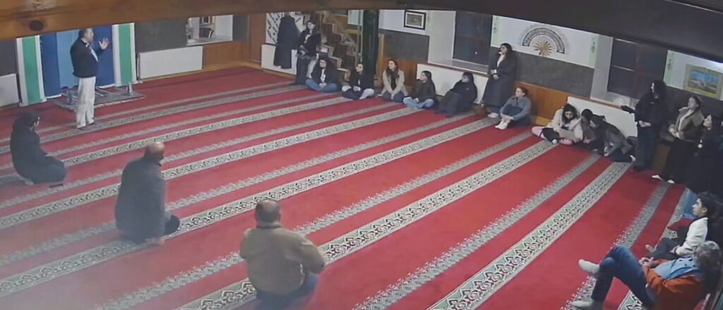 Επιπλέον, έγινε παρουσίαση της λειτουργίας του χώρου, του ρόλου του στη σύγχρονη κοινωνική ζωή της πόλης και της συμβολής του στη διατήρηση της θρησκευτικής και πολιτισμικής πολυμορφίας. Η επίσκεψη προσέφερε στους συμμετέχοντες τη δυνατότητα να συνδέσουν τη θεωρητική γνώση του μαθήματος με την πραγματικότητα μιας ζωντανής πολυπολιτισμικής κοινότητας, ενισχύοντας την κατανόηση του σεβασμού και της συνύπαρξης διαφορετικών θρησκευτικών παραδόσεων.