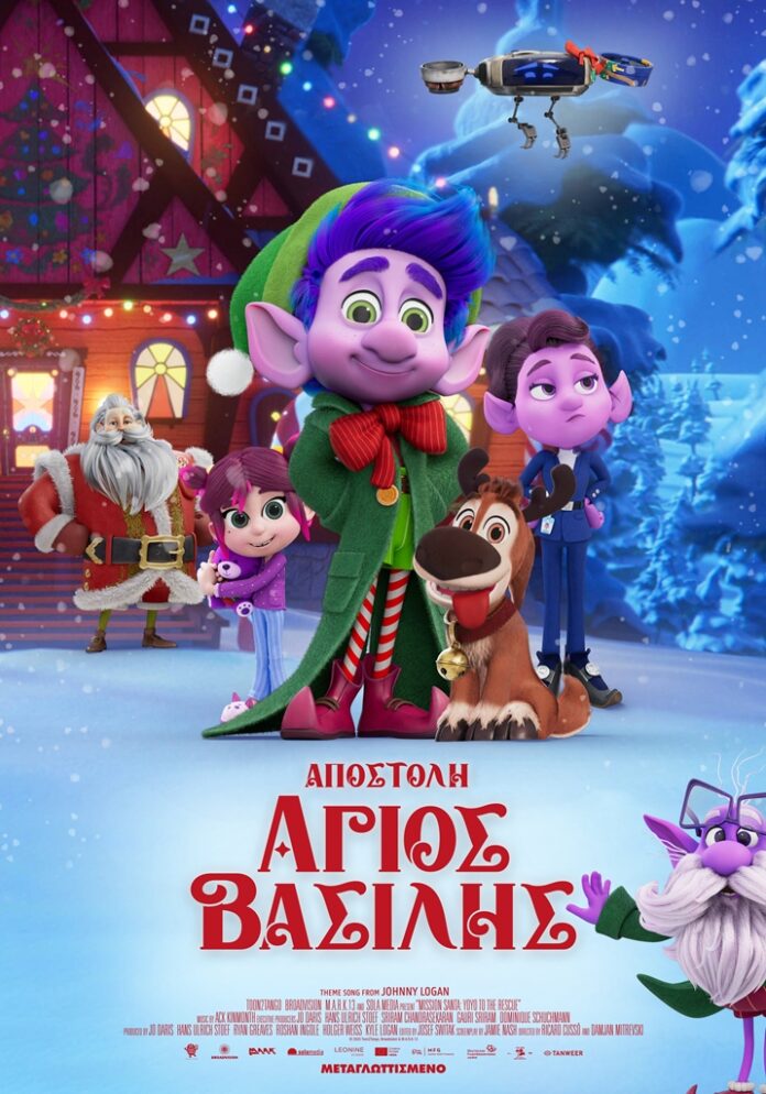 Έρχεται σε Πανελλήνια Πρεμιέρα η ταινία Κινουμένων Σχεδίων, «Αποστολή Άγιος Βασίλης» των Ρίκαρντ Κούσο (Σούπερ Μάγκι, Βραδύποδες στην Κουζίνα) & Ντάμιαν Μιτρέφσκι με τους Τίτο Γρηγορόπουλο, Ζωή Κατσάτου, Τζίνη Παπαδοπούλου, Γιάννη Στεφόπουλο, Ντίνο Σούτη, Φοίβο Ριμένα, Άντρια Ράπτη, Χρυσούλα Παπαδοπούλου, Άγγελο Λιάγκο, Δημήτρη Ζαπατίνα, Βασίλη Μήλιο, Γιώργο Σκουφή & Νάρια Αθανασοπούλου στην μεταγλωττισμένη έκδοση…