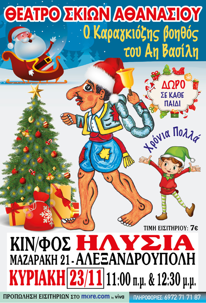 Ενώ έρχεται και η παράσταση, «Ο Καραγκιόζης Βοηθός του Άη Βασίλη» από το Θέατρο Σκιών Αθανασίου…