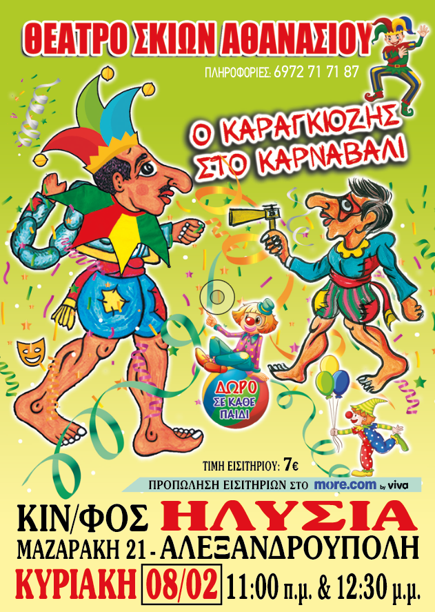 Ενώ έρχεται και η παράσταση, «Ο Καραγκιόζης στο Καρναβάλι» από το Θέατρο Σκιών Αθανασίου…