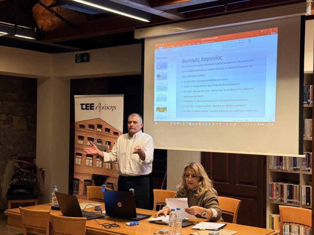 Με μεγάλη συμμετοχή πραγματοποιήθηκε η ημερίδα με θέμα «Πυροπροστασία Κτιρίων: Νομοθετικό Πλαίσιο και Διαδικασίες Εφαρμογής», τη Δευτέρα 8 Δεκεμβρίου 2025, στη Δημοτική Βιβλιοθήκη Αλεξανδρούπολης (Πρώην Καπνομάγαζο), που διοργάνωσε το Περιφερειακό Τμήμα Θράκης του Τεχνικού Επιμελητηρίου Ελλάδας.