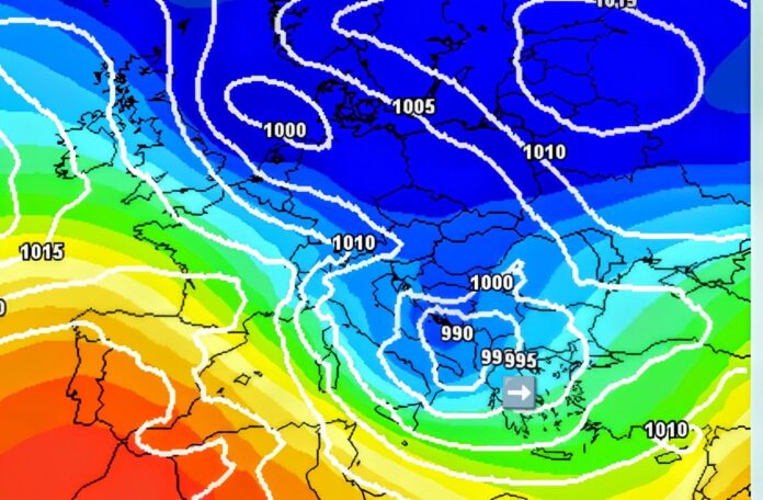 Την αιτία της μεταβολής του καιρού την βλέπουμε στην εικόνα κάτω.Ενα βαρομετρικό χαμηλό το οποίο θα κινηθεί βορειότερα της περιοχής μας, με κατεύθυνση προς τον Εύξεινο Πόντο. Το σύστημα αυτό συνοδεύεται από ένα ψυχρό μέτωπο το οποίο θα διασχίσει γρήγορα τη Θράκη από τα δυτικά προς τα ανατολικά. Η διέλευση αυτή θα προκαλέσει ένα σύντομο πέρασμα βροχοπτώσεων με ισχυρές τοπικές εξάρσεις, αλλά με γρήγορη βελτίωση μέχρι τις πρώτες βραδινές ώρες.