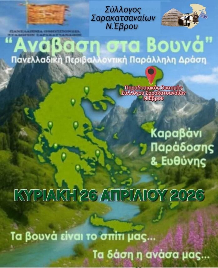 Κάλεσμα συμμετοχής στη δράση «Ανάβαση στα βουνά» απευθύνει ο Σύλλογος Σαρακατσαναίων Νομού Έβρου, στο πλαίσιο πρωτοβουλίας της Πανελλήνιας Ομοσπονδίας Συλλόγων Σαρακατσαναίων, με τίτλο «Καραβάνι Παράδοσης & Ευθύνης».