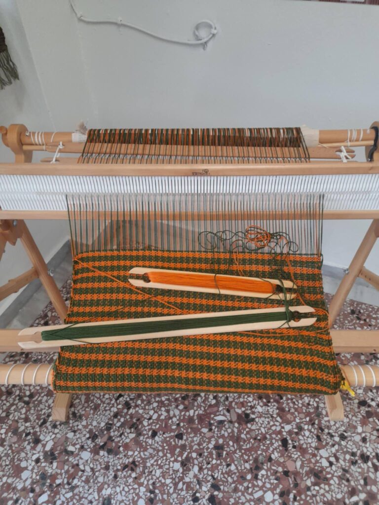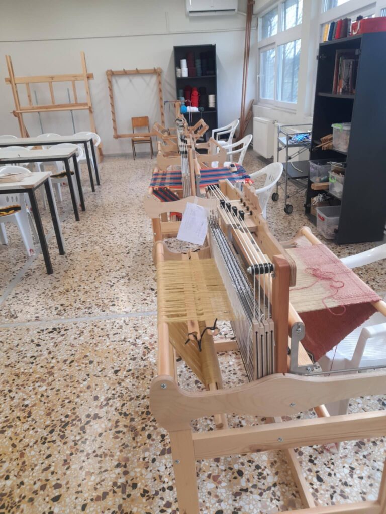 Κατά την επίσκεψή της, η κ. Σακελλαροπούλου ξεναγήθηκε στους χώρους των εργαστηρίων και στον εκθεσιακό χώρο των παραδοσιακών υφαντών της σχολής. Συνομίλησε με τους σπουδαστές για τη λειτουργία της Σχολής, την εξειδικευμένη θεωρητική και πρακτική εκπαίδευση στην υφαντουργική παράδοση, καθώς και για την παραδοσιακή και σύγχρονη τέχνη του αργαλειού. Η πρώην Πρόεδρος εξέφρασε τον ενθουσιασμό της για την ποιότητα και την καλαισθησία των χειροποίητων υφαντών.