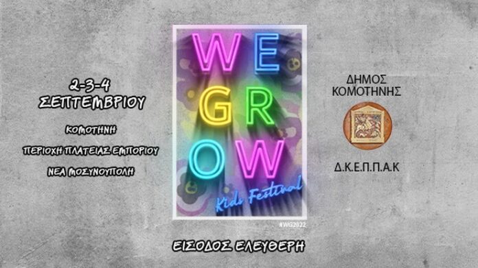 Το WeGrow Kids Festival, θεωρείται σήμερα το παιδικό υπαίθριο φεστιβάλ που άλλαξε τα δεδομένα των πολιτιστικών εκδηλώσεων για παιδιά στην πόλη της Κομοτηνής και είναι πλέον μια διοργάνωση αντάξια των μεγαλύτερων πανελλαδικά αντίστοιχων διοργανώσεων.