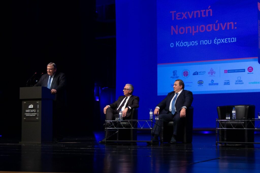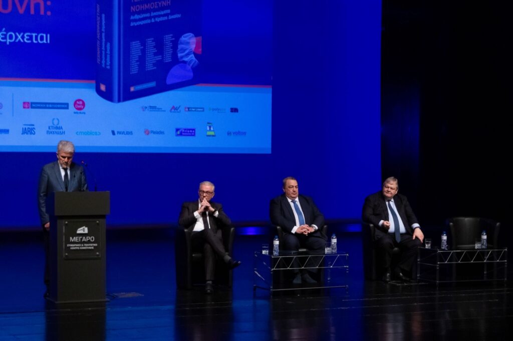 Ο Ευάγγελος Βενιζέλος, ως Καθηγητής Συνταγματικού Δικαίου, ανέλυσε τις θεσμικές και συνταγματικές προκλήσεις που εγείρει η Τεχνητή Νοημοσύνη, χαρακτηρίζοντας τον τόμο ως έργο επιστημονικής αναφοράς και αναφερόμενος στην ανάγκη θεσμικής θωράκισης των δικαιωμάτων στην ψηφιακή εποχή.