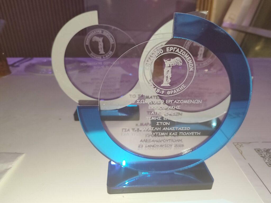 Κατά τη διάρκεια της εκδήλωσης απονεμήθηκε τιμητική πλακέτα στον Προϊστάμενο του Οικονομικού Τμήματος, κ. Αναστάσιο Μαρασλή, ο οποίος συνταξιοδοτείται, ως αναγνώριση της πολυετούς προσφοράς του στο ΕΚΑΒ 9 Θράκης.