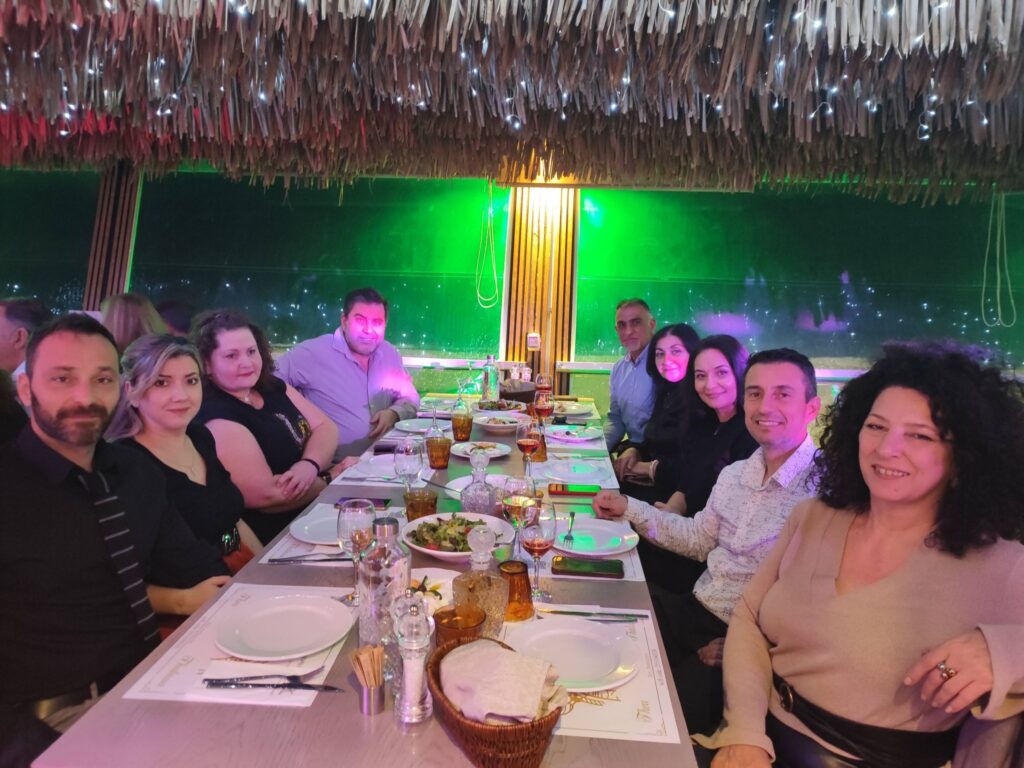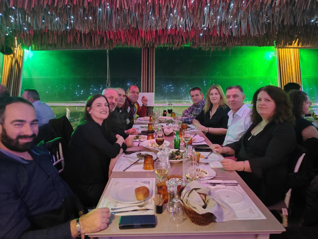 Η βραδιά συνεχίστηκε με φαγητό και χορό, δημιουργώντας όμορφη ατμόσφαιρα και ανεβάζοντας το κέφι των συμμετεχόντων. Οι εργαζόμενοι ευχήθηκαν να συνεχιστούν ανάλογες εκδηλώσεις και τα επόμενα χρόνια.