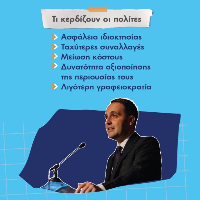 Το Κτηματολόγιο μετατρέπεται έτσι από χρόνια εκκρεμότητα σε ένα πρακτικό εργαλείο καθημερινής ασφάλειας και ανάπτυξης για πολίτες και επιχειρήσεις.