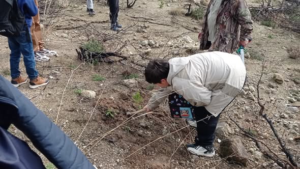 Στη συνέχεια, οι μαθητές βγήκαν στο πεδίο έτοιμοι να αναλάβουν δράση. Χωρισμένοι σε τέσσερις ομάδες, καθάρισαν τα αδύναμα και ξερά κλαδάκια γύρω από τα νέα δενδρύλλια της φυσικής αναγέννησης, βοηθώντας τα να αναπτυχθούν πιο γρήγορα και υγιή.