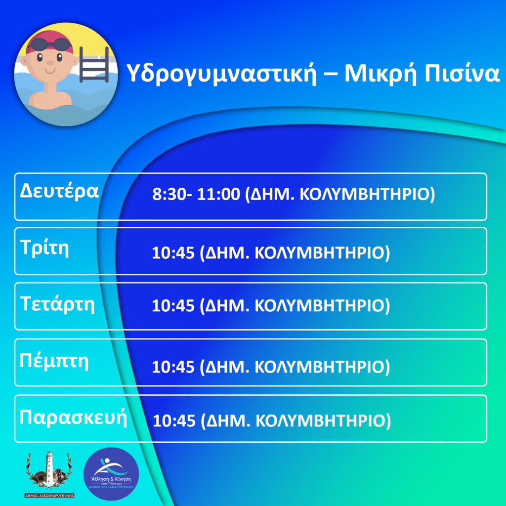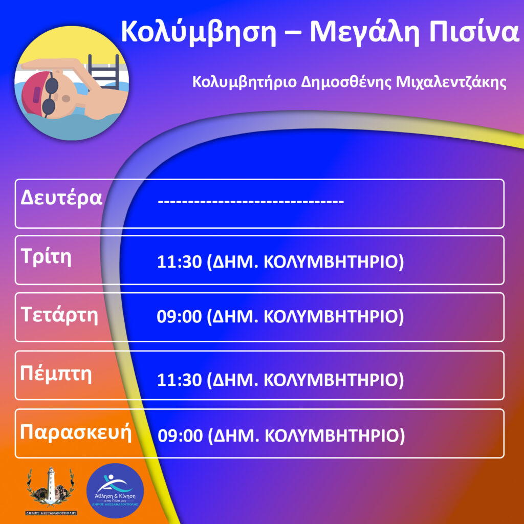 Οι ενδιαφερόμενοι μπορούν να ενημερωθούν για το πρόγραμμα, τα τμήματα και τα ωράρια μέσω της επίσημης ιστοσελίδας του Δήμου Αλεξανδρούπολης ή να υποβάλουν δήλωση συμμετοχής στα γραφεία του Δήμου στο Δημοτικό Κολυμβητήριο «Δημοσθένης Μιχαλεντζάκης».