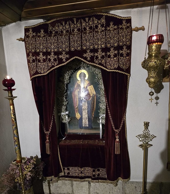 Ο Σεβασμιώτατος Μητροπολίτης κ. Δαμασκηνός ιερούργησε στο Μετόχι της Αγιορειτικής Μονής Ιβήρων, στην Κορνοφωλιά Σουφλίου, όπου φυλάσσεται απότμημα των ιερών λειψάνων του Αγίου. Στο ιερό βήμα συλλειτούργησε ο Καθηγούμενος της Μονής Ιβήρων Αρχιμανδρίτης Ναθαναήλ, ενώ τους ύμνους απέδωσαν πατέρες της Μονής.