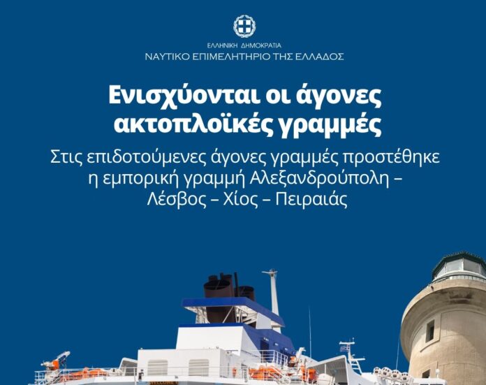 Στο πλαίσιο αυτό, το Υπουργείο Ναυτιλίας & Νησιωτικής Πολιτικής προχωρά σε επιχορήγηση ακτοπλοϊκών γραμμών, γνωστών ως άγονες γραμμές, προκειμένου να ενισχυθούν οι μεταφορές αγαθών και προϊόντων μεταξύ νησιών και ηπειρωτικής Ελλάδας.