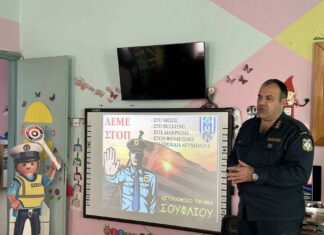 Ο Διοικητής του Αστυνομικού Τμήματος Σουφλίου επισκέφθηκε το 1ο Νηπιαγωγείο Σουφλίου και πραγματοποίησε μια διαδραστική ομιλία για την κυκλοφοριακή αγωγή στους μικρούς μαθητές.