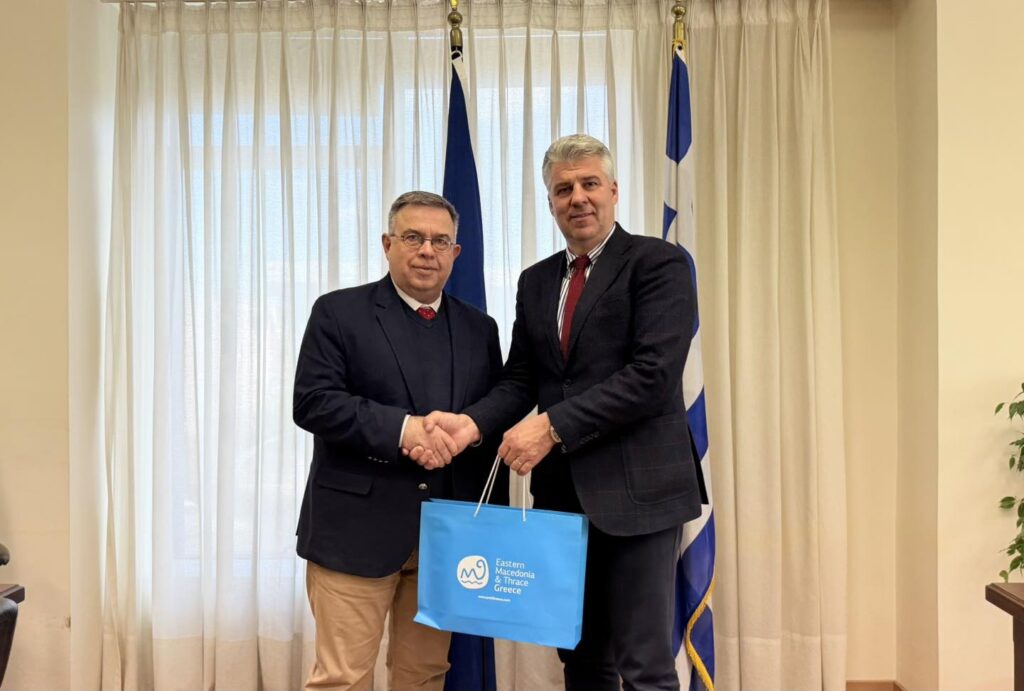 Χθες, Πέμπτη 19 Φεβρουαρίου, ο Χριστόδουλος Τοψίδης υποδέχτηκε στο γραφείο του τον Γραμματέα της Αποκεντρωμένης Διοίκησης Μακεδονίας – Θράκης, Δημήτρη Γαλαμάτη, συνοδευόμενο από συνεργάτες του, σε μια συνάντηση που χαρακτηρίστηκε ιδιαίτερα ουσιαστική και παραγωγική.