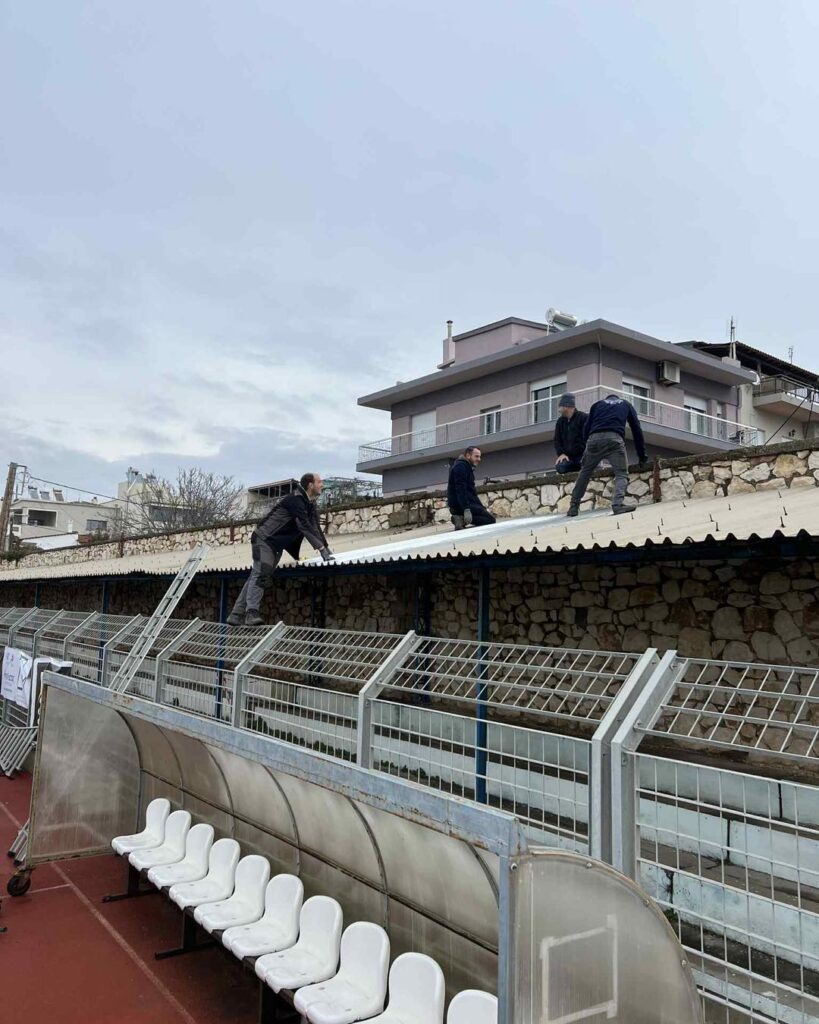 Παράλληλα, ολοκληρώθηκε η τοποθέτηση νέων λαμαρινών στο ανατολικό τμήμα της κερκίδας, στα σημεία όπου είχαν καταγραφεί ζημιές. Οι παρεμβάσεις στοχεύουν στην ενίσχυση της αντοχής των εγκαταστάσεων απέναντι σε αντίστοιχα φαινόμενα στο μέλλον και στη διατήρηση της ασφαλούς χρήσης του γηπέδου από αθλητές και φιλάθλους.
